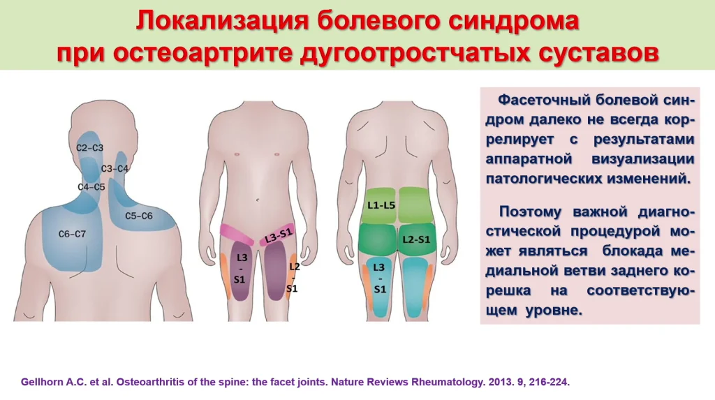 Фасеточный болевой синдром вызван остеоартритом фасеточных, (дугоотросчатых) суставов.