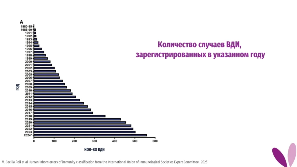 Ниже представлен график из буквально последнего пересмотра, с количеством врождённых дефектов иммунитета, зарегистрированных за каждый год.