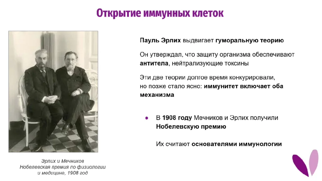 Далее Пауль Эрлих выдвинул гуморальную теорию - он утверждал, что в организме есть такие антитела, которые его защищают, и какое-то время между ними был спор “кто из них прав?”