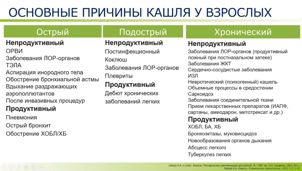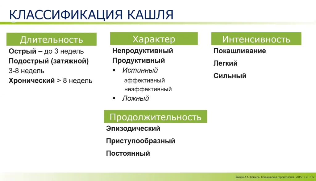 Очень важным критерием кашля является его продуктивность. Он может быть непродуктивным (часто его называют “сухим”) или продуктивным. Продуктивный кашель в свою очередь тоже далеко не однороден.