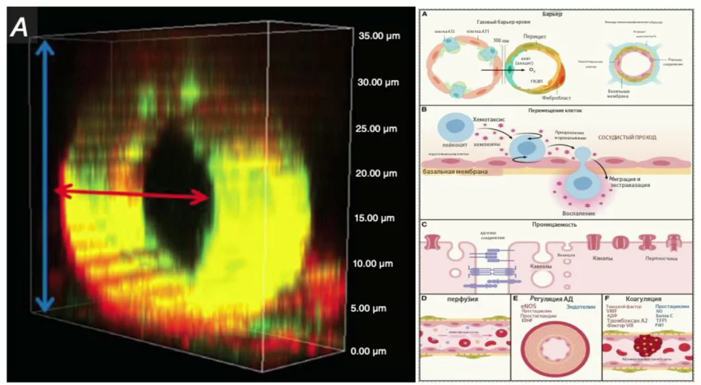 Сегодня этот барьер очень подробно описан. И ученые со всего мира очень много сделали для того, чтобы, к примеру, описать капиллярную утечку, как на рисунке ниже.