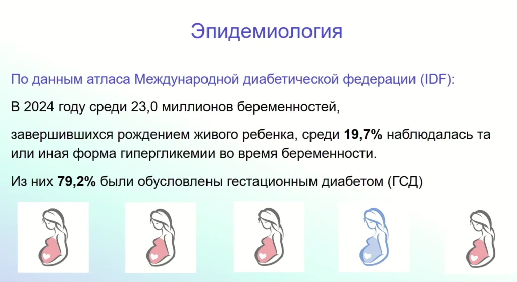 По данным Атласа Международной диабетической федерации, в 2024 году среди всех беременностей, завершившихся рождением здорового живого ребёнка, около 20% беременностей были осложнены сахарным диабетом. Это каждая пятая беременная женщина.