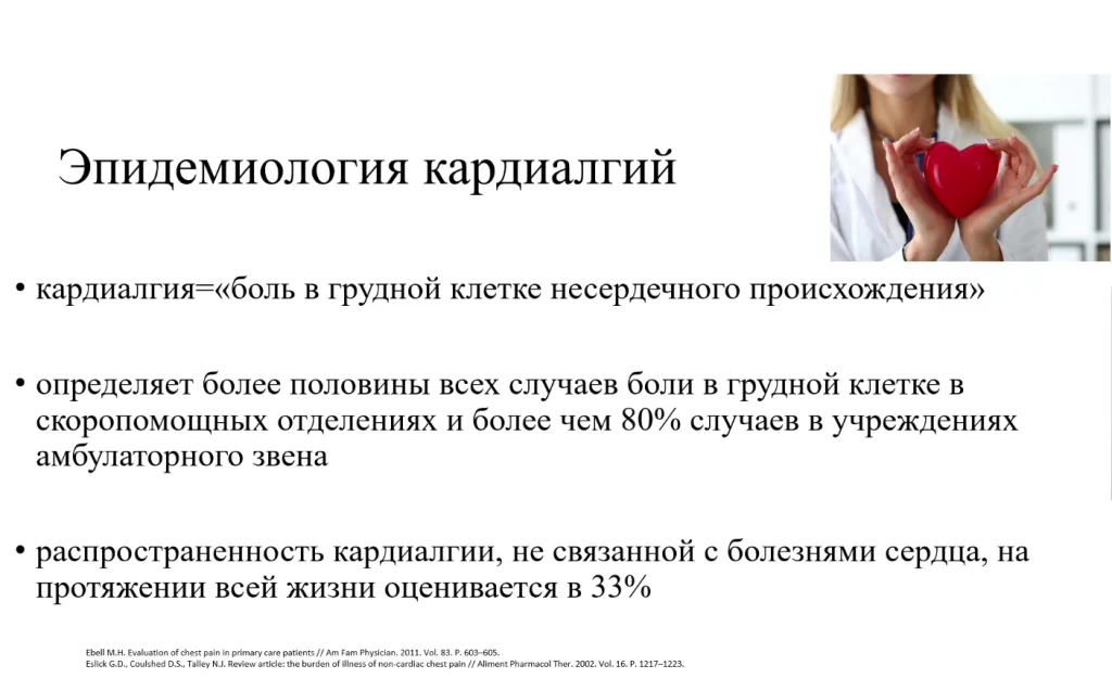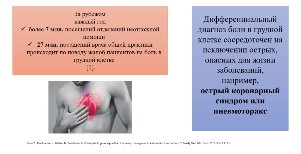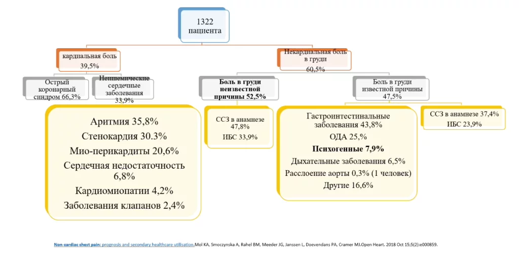 50% всех пациентов с болью в груди, которые поступают в отделение неотложной помощи имеют некардиальную боль в груди, то есть у них нет сердечной патологии.