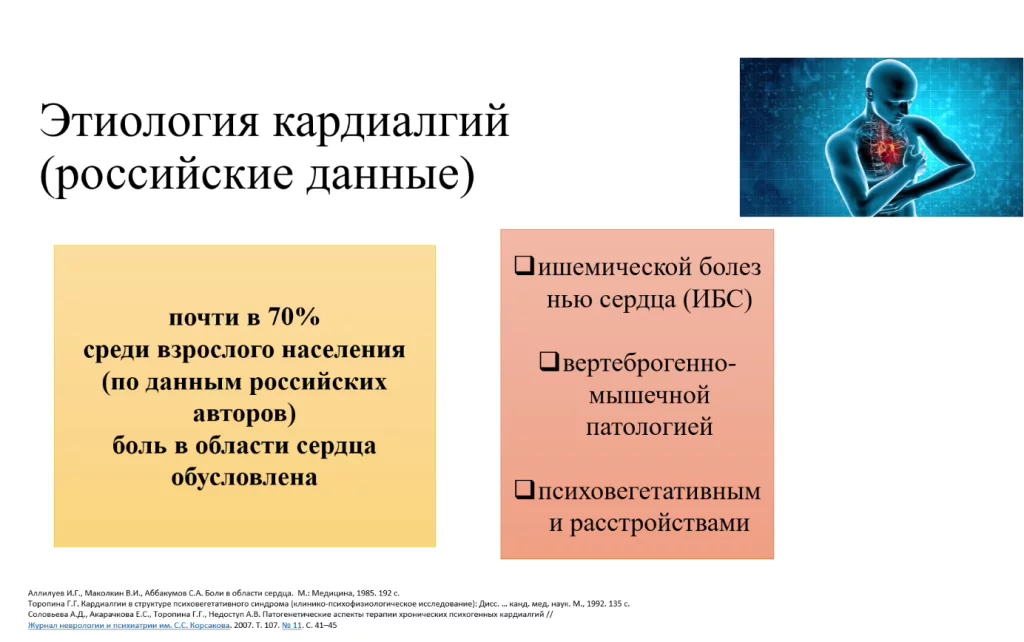 Согласно российским данным у почти 70% взрослого населения с жалобой на боль в области сердца, эта боль связана с: