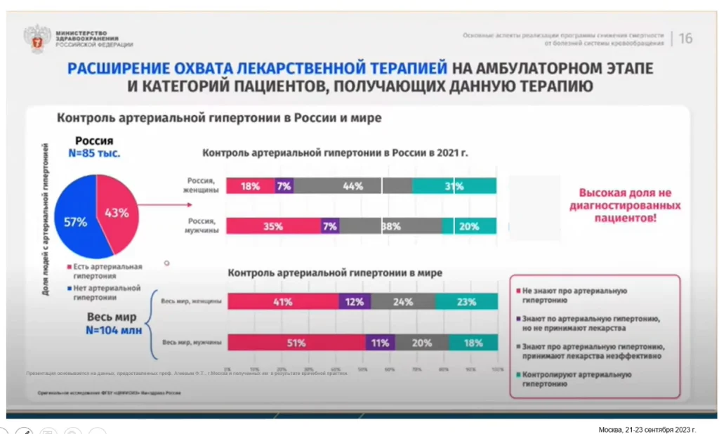 Самая удивительная - серая зона, 44% женщин, 38% мужчин. Это те, которые знают, что у них гипертония, которые принимают какие-то лекарства, но при этом цель не достигнута.