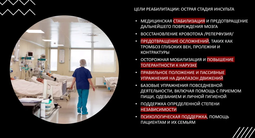 Именно поэтому нормативные документы указывают на то, что реабилитационные вмешательства должны начинаться не позднее 48 часов от момента поступления пациента в стационар.
