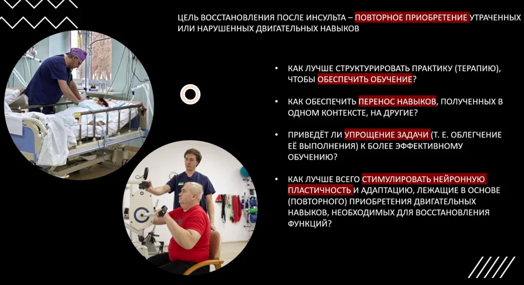 Целью лечения пациентов после инсультов становится повторное обретение тех навыков, восстановление навыков, которые были утрачены или глобально нарушены.