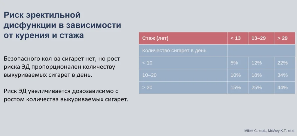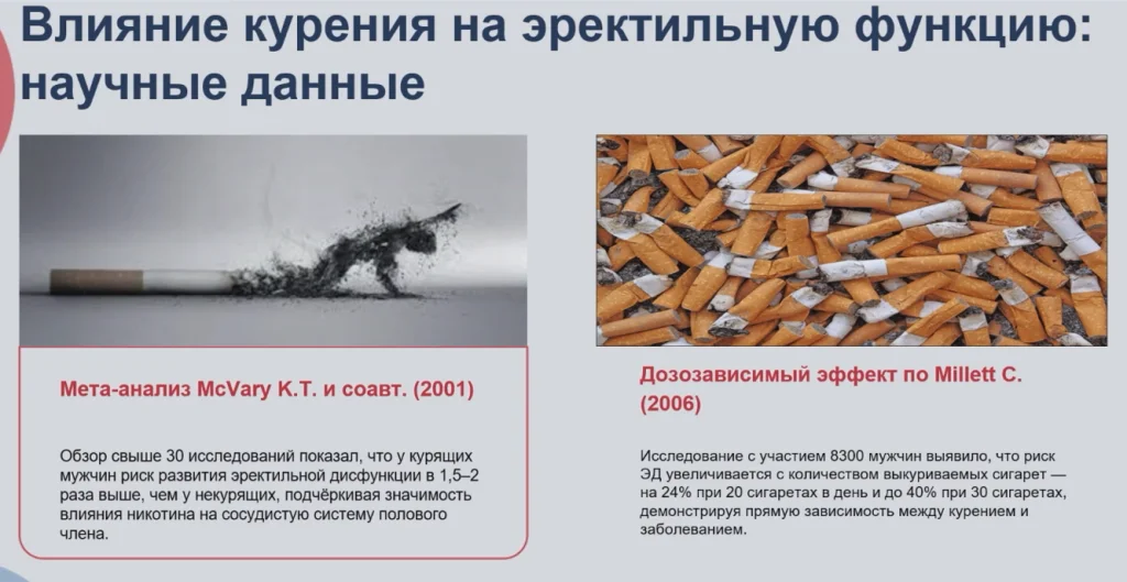 Эти данные подчёркивают значимость влияния никотина на сосудистую систему полового члена.