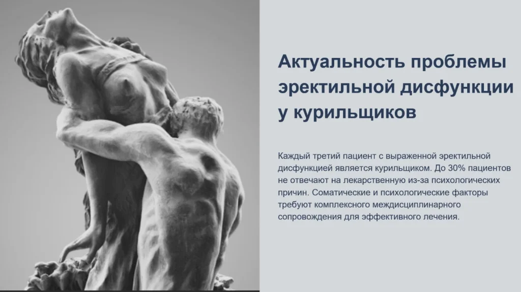 Более подробно об эректильной дисфункции на фоне табакокурения и психологических аспектах этого сочетания смотрите в видеолекции экспертов.