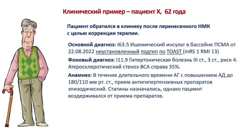 При изучении его медицинской документации видно, что в тот период, когда у него был инсульт, были обнаружены атеросклеротические бляшки с неровным контуром. При этом не установлены патогенетические подтипы.