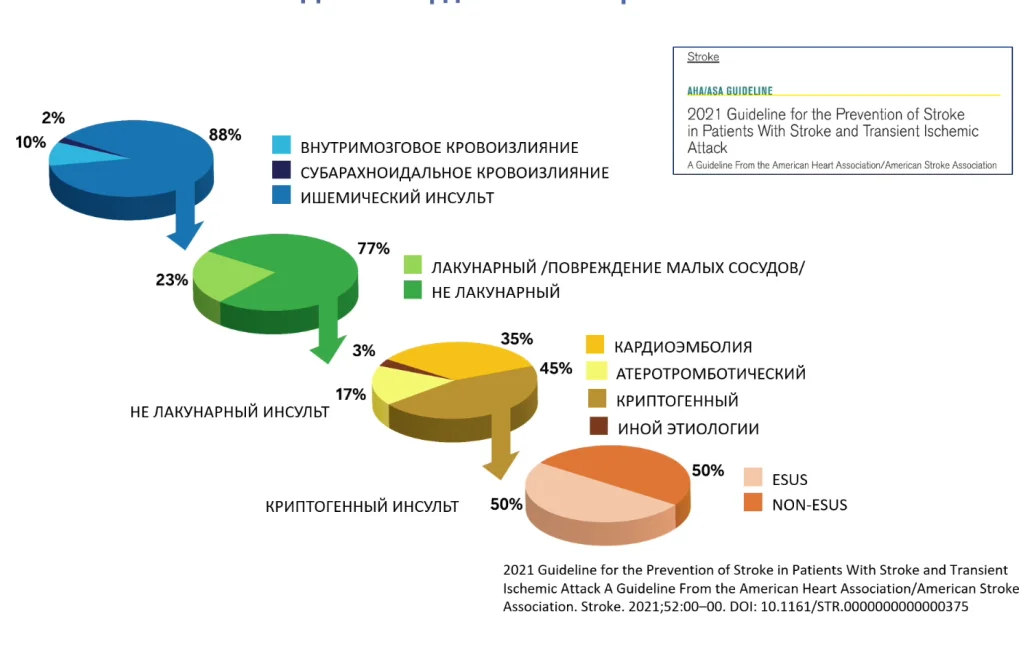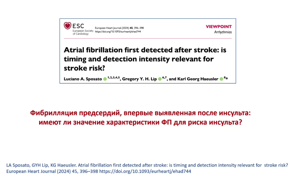 В последней работе 2024 года, фибрилляция предсердия, выявленная после инсульта -до инсульта не знали о ней, что это имеет значение для того инсульта, который произошел.