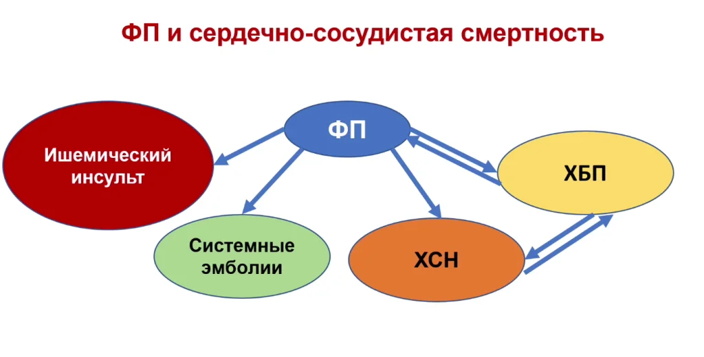 Это те состояния, которые развиваются у пациентов с ФП, если их неправильно вести и лечить ФП и коморбидности.