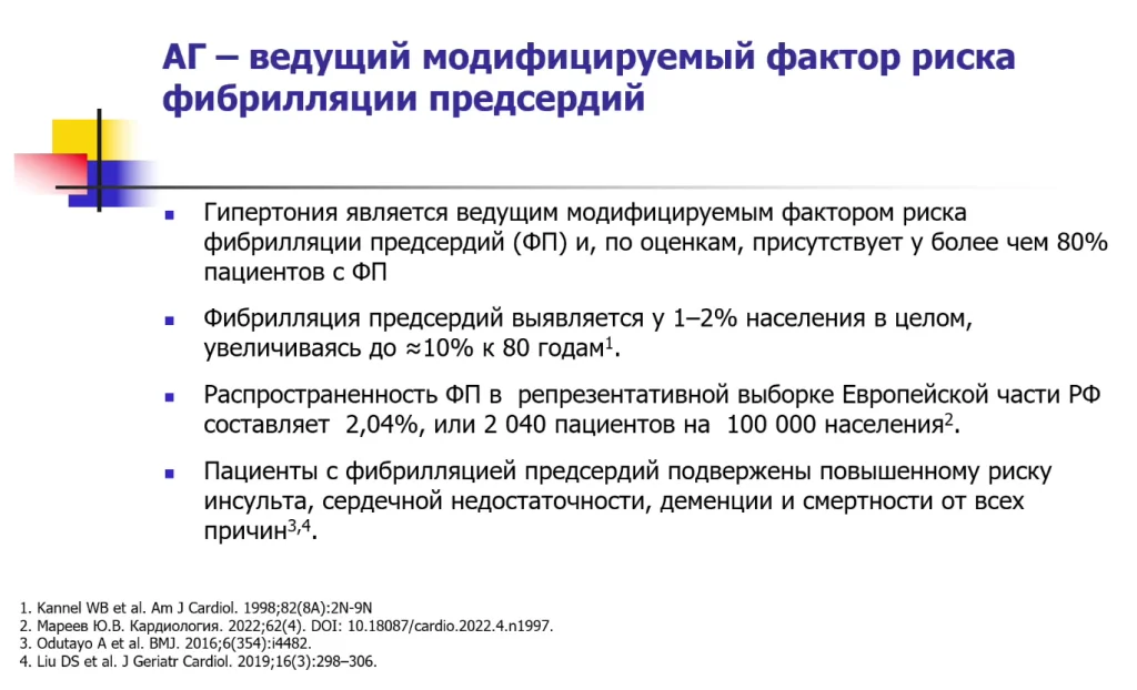 Нужно понимать, что гипертония - ведущий модифицируемый фактор риска фибрилляции предсердия. И по оценкам присутствует у более чем 80% больных с ФП.