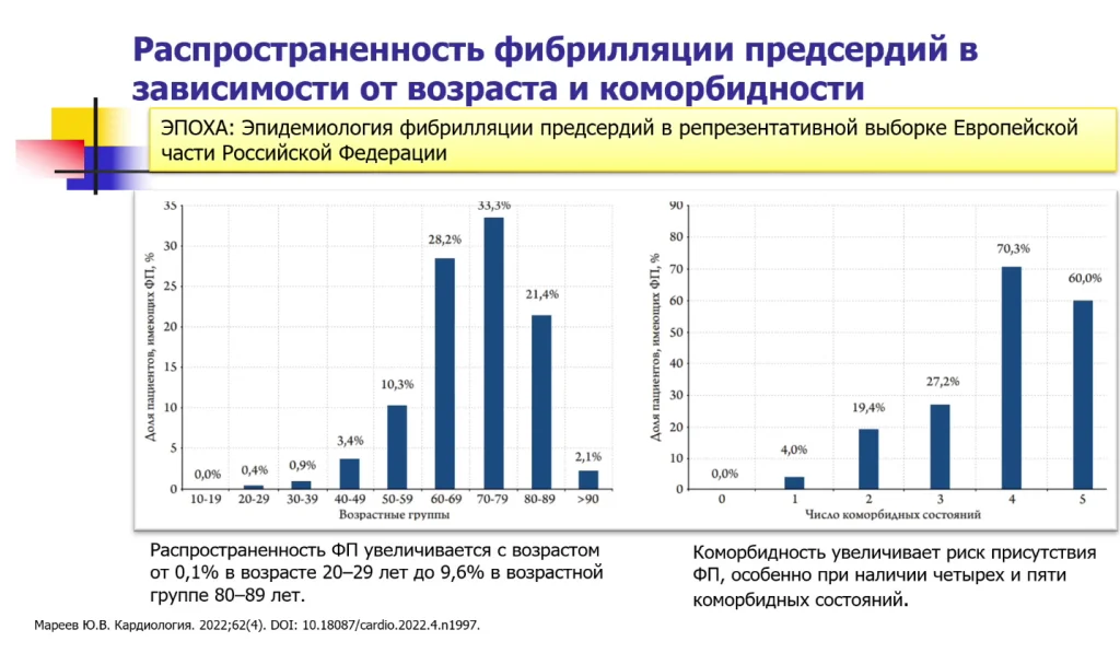 Ниже представлено исследование ЭПОХА - эпидемиология фибрилляции предсердия в европейской части РФ.