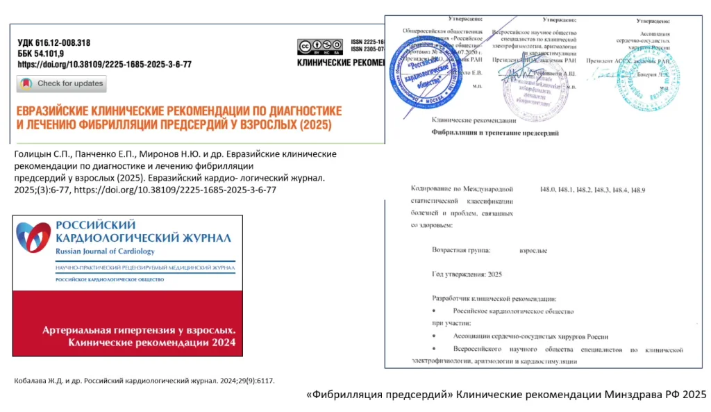 Эксперты в работе основываются на европейских и отечественных клинических рекомендациях по артериальной гипертензии. В 2025 году вышли клинические рекомендации по фибрилляции и трепетанию предсердий.