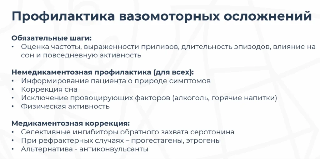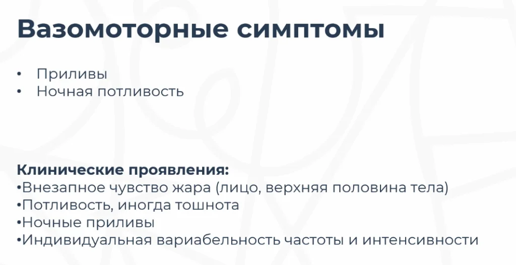 Сбор анамнеза. Пациента необходимо опросить и оценить частоту, выраженность приливов, длительность эпизодов, влияние на сон и повседневную активность.