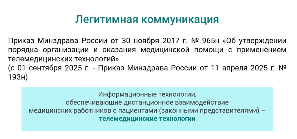 Более подробно о юридических особенностях телемедицины, о том, как правильно вести переписку в мессенджерах и как ее использовать в истории болезни, разборы примеров из практики смотрите в видеолекции эксперта.
