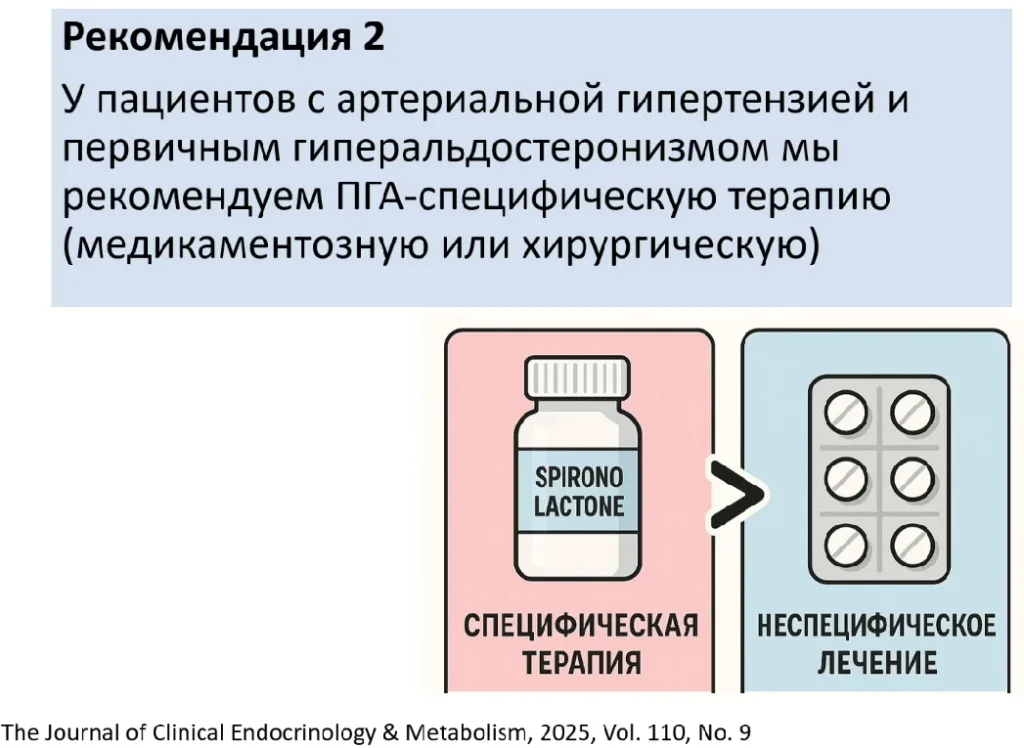 Настороженность в области первичного гиперальдостеронизма позволит выделить ту подгруппу пациентов, у которой антиальдостероновые препараты станут уже препаратами не резерва, не препаратами четвёртой линии, а препаратами даже первых линий.