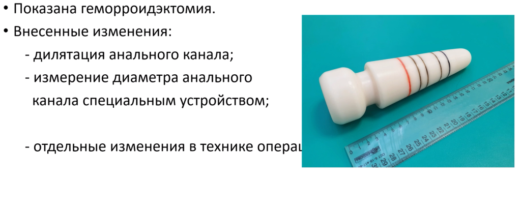 Это даёт практически отсутствие или минимальный послеоперационный болевой синдром. Минимальный послеоперационный болевой синдром позволяет практически очень широко оперировать. Хотя здесь тоже есть большие изменения, но это может быть и открытая, и закрытая геморроидэктомии.