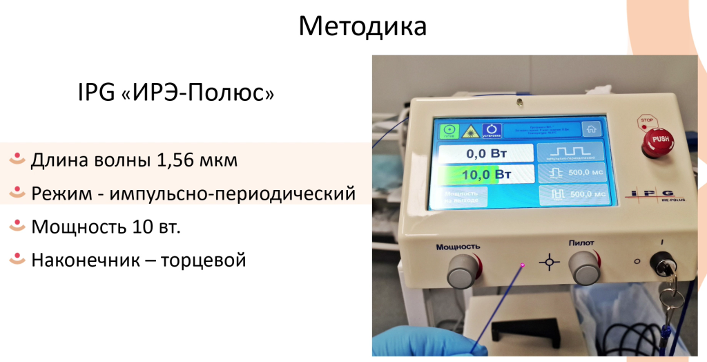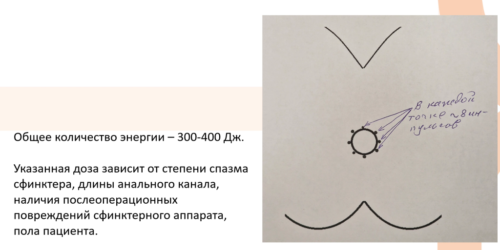 Процедура делается по кругу, потому раньше делали в основном по задней стенке, в веерообразном направлении, но концентрация воздействия лазерной энергии была достаточно высока. Были получены два случая осложнения, поэтому сейчас решили рассеивать эту энергию по окружности, чтобы не создавать ее концентрацию в каком-то определенном месте.