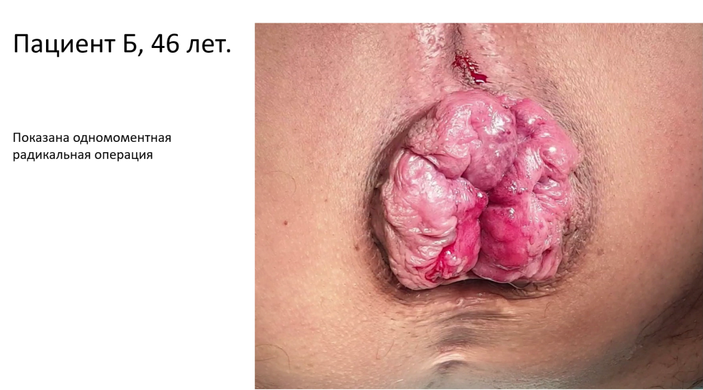 Пациенту 46 лет и у него комбинированный геморрой в запущенной стадии.