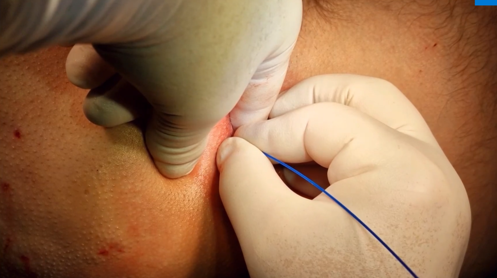 В материале приведено видео с проведенной процедуры, где виден верхний пектиноз с четкими краями, схожий на неполный небольшой свищ.