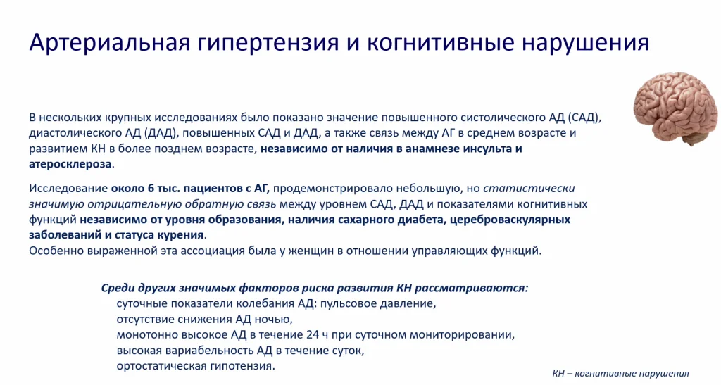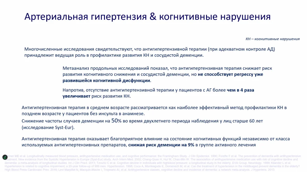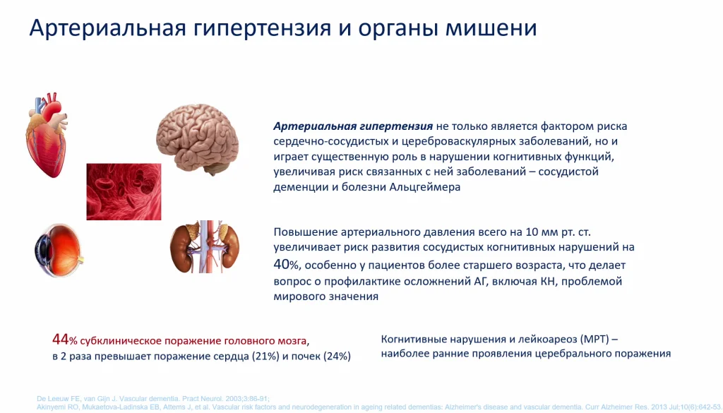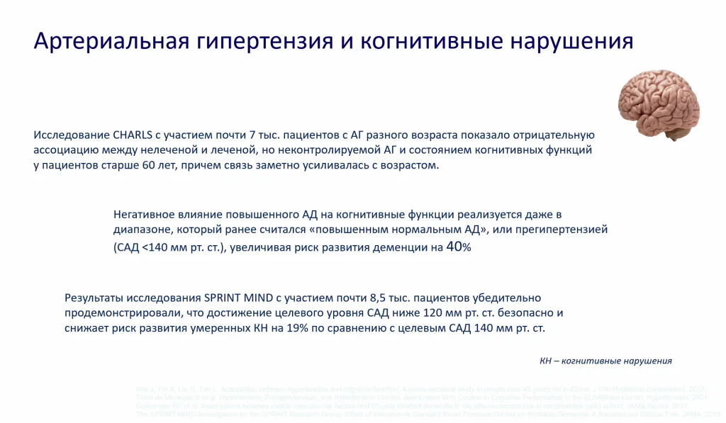 Существенные когнитивные нарушения и дементные нарушения пугают не всех. В большом количестве мета-анализов показано, насколько неправильный подбор и неправильный приём антигипертензивной терапии в дальнейшем может привести к дементным нарушениям.