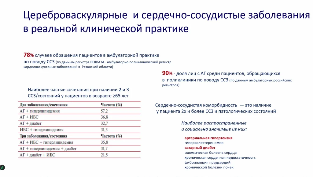Если смотреть на кардиологическую сферу, то социально-значимой является артериальная гипертензия, которая становится всё моложе и является одним из самых коморбидных заболеваний.
