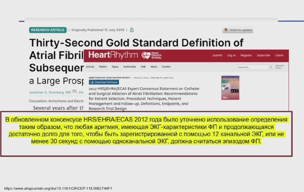 Возникает ряд недопониманий. В европейских рекомендаций четко сказано, что период времени, необходимый для постановки диагноза по данным методов мониторирования сердечного ритма, четко неопределённый, надо проводить исследования.