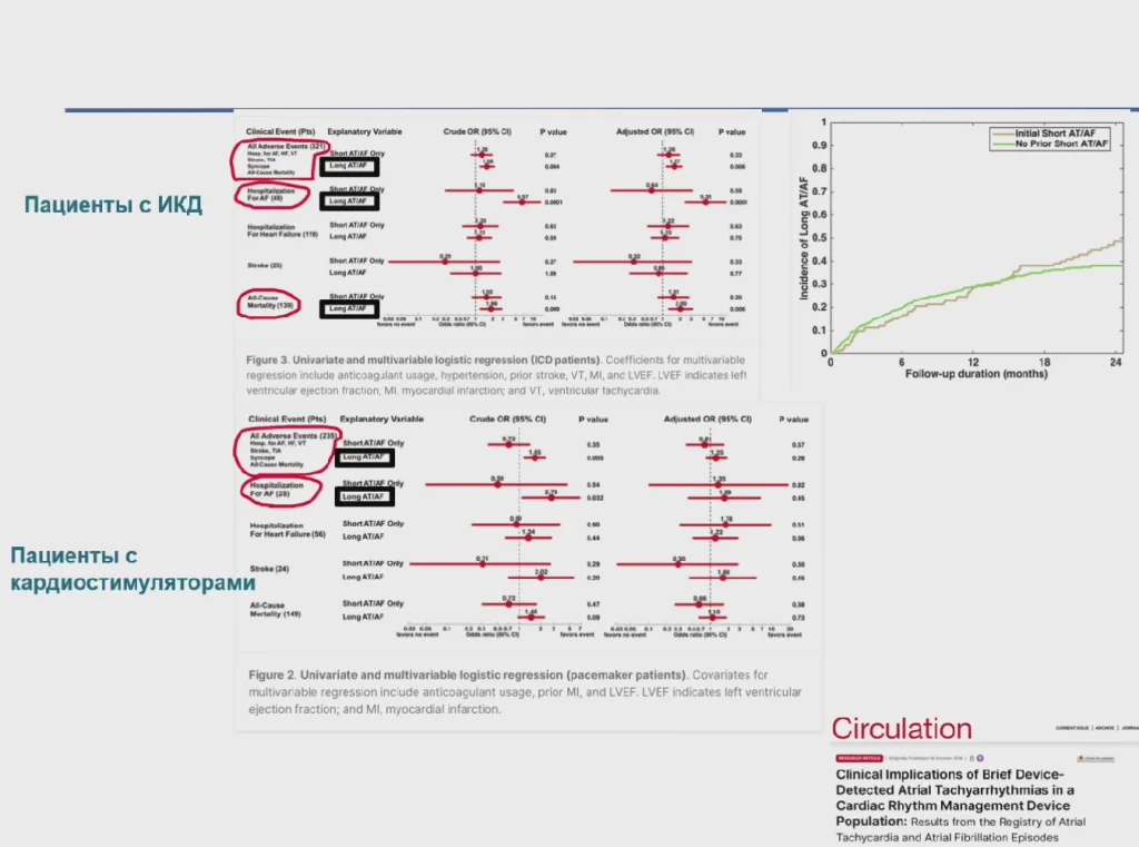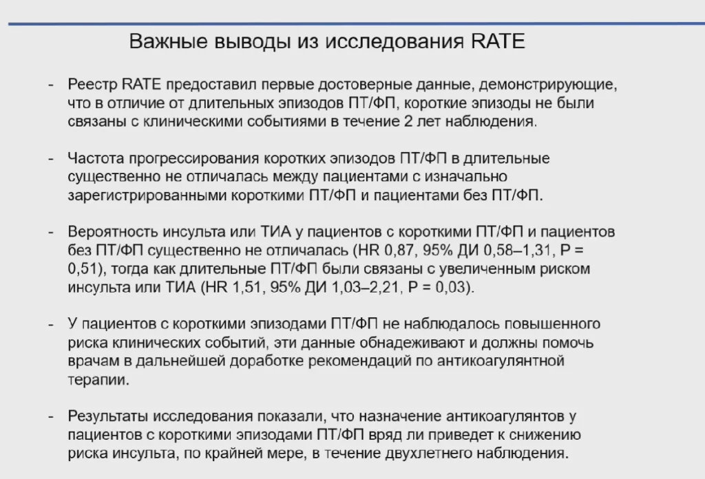 Самый главный вывод - на вероятность развития тромбоэмболических осложнений или увеличения эти короткие до 20 секунд, никаким образом не влияли по сравнению с пациентами, у которых не было вообще зарегистрированы аритмии, в том числе фибрилляция предсердий.
