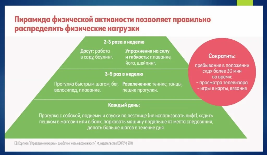 Мы не можем поменять людям работу, изменить их отношение к работе, но можно обсудить те факторы, которые могут улучшить качество жизни пациентов. Например, пирамида физической активности, которая позволяет правильно распределить физическую нагрузку.